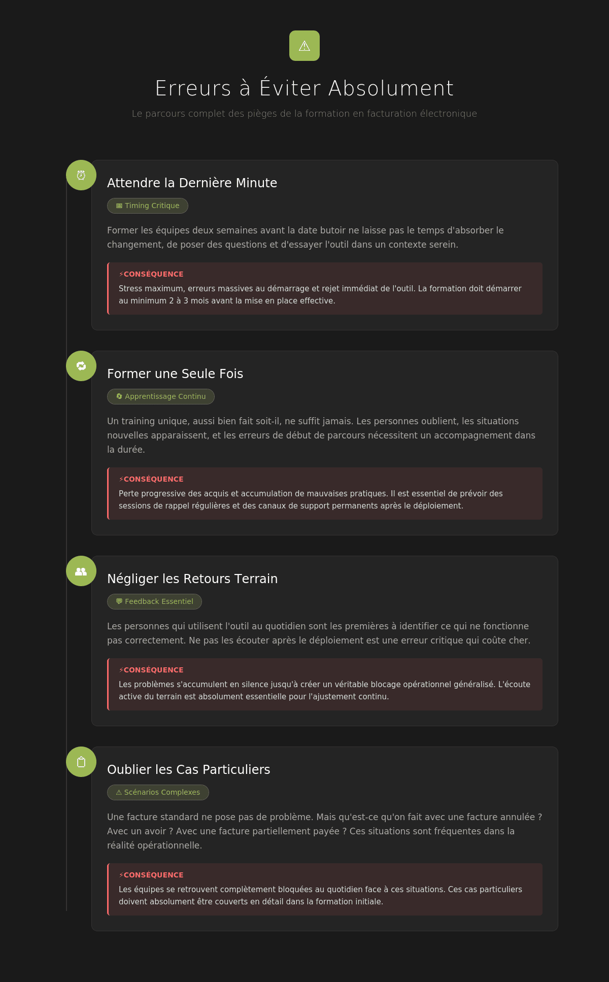 Plusieurs patterns d'échec sont récurrents dans ce type de projet, et ils sont tous liés à la façon dont la formation est organisée (ou pas).